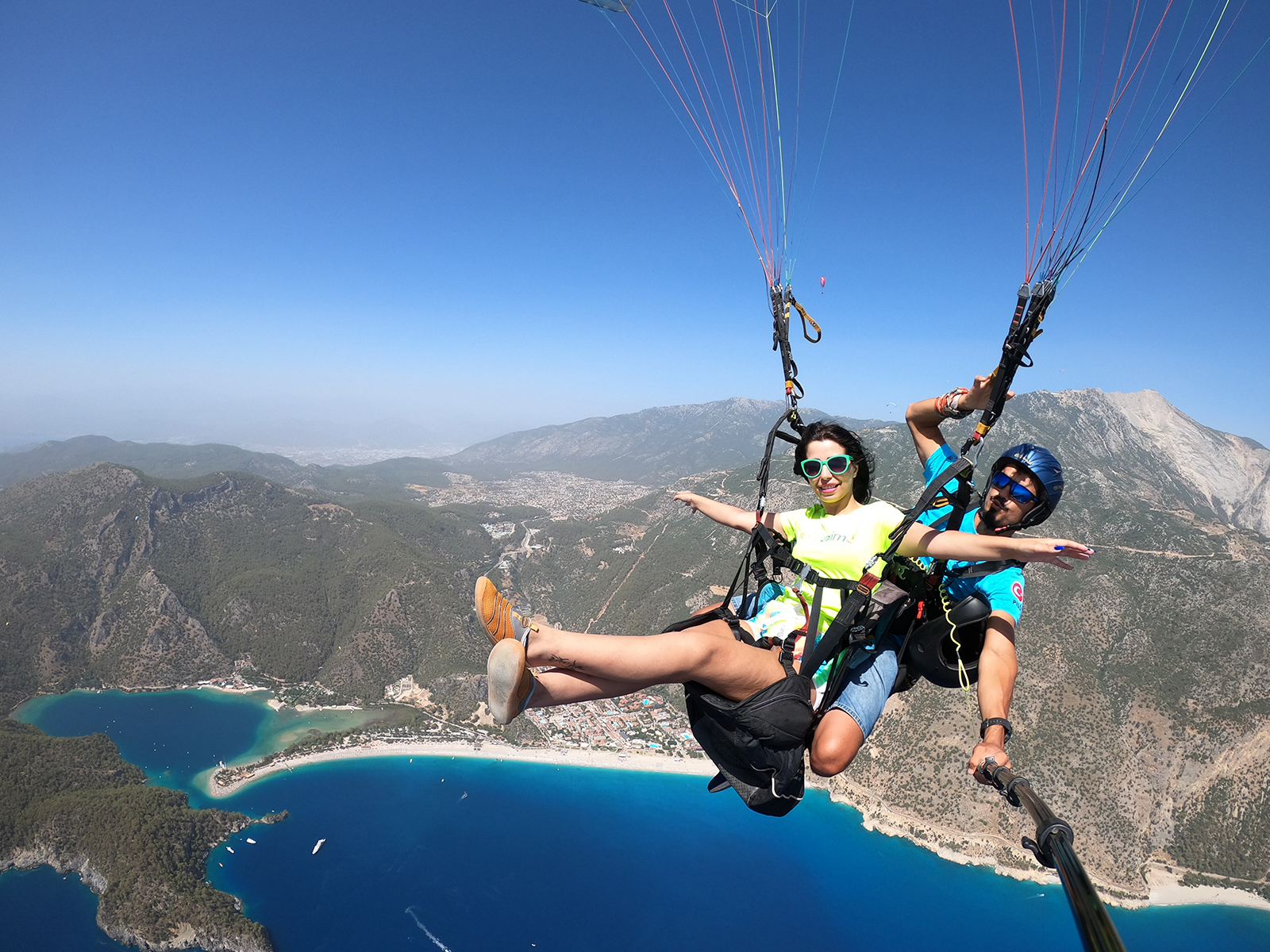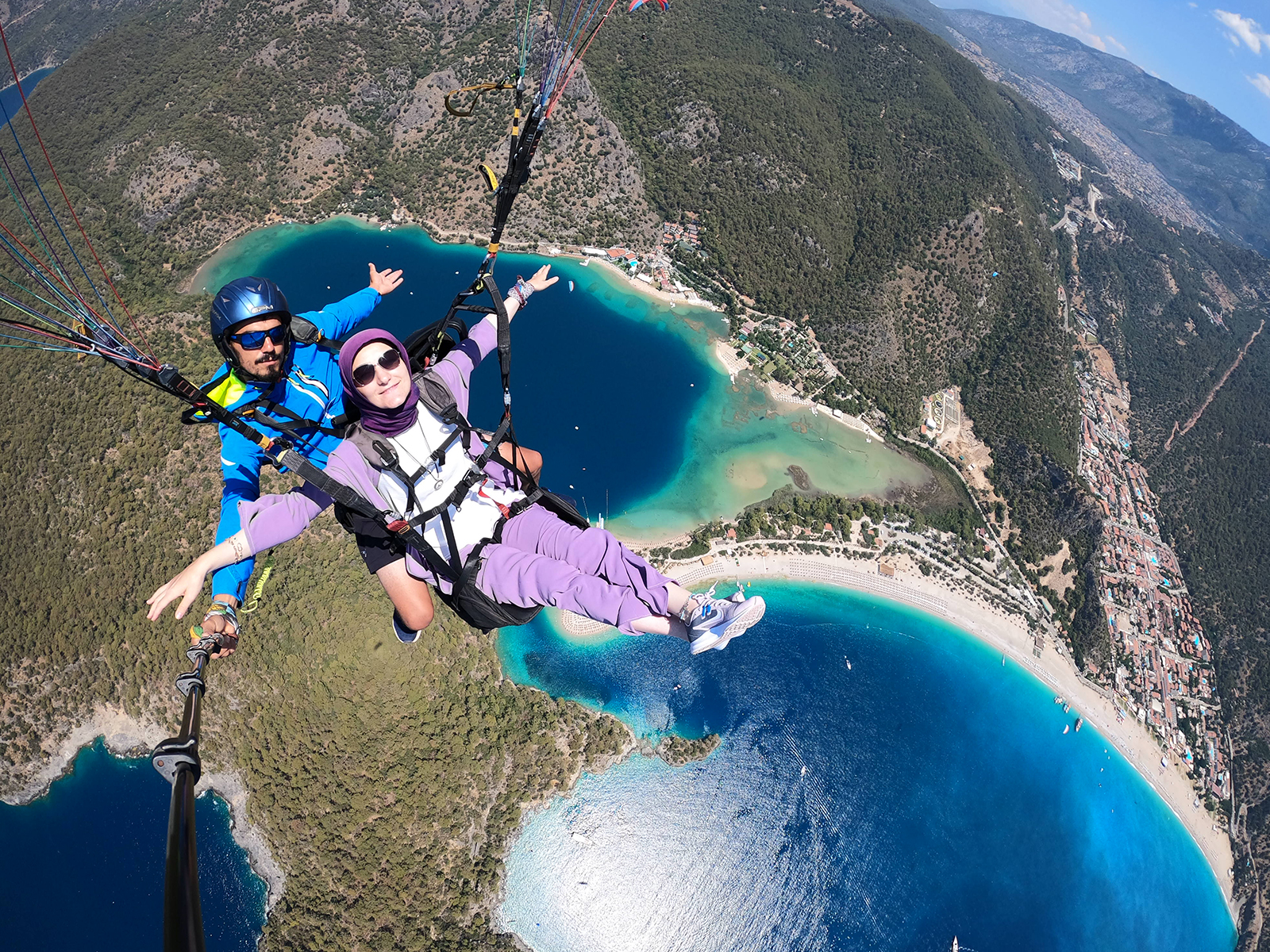 Fethiye, muhteşem koyları, turkuaz suları ve etkileyici dağ manzaralarıyla ünlüdür. Yamaç paraşütü yaparken, Babadağ'dan (Baba Dağı) başlayarak Fethiye'nin nefes kesen manzaralarını keşfedebilirsiniz. Ege Denizi'nin turkuaz suları, yeşil ormanlar ve antik kentlerin kalıntıları, gökyüzünden muhteşem bir manzara sunar.